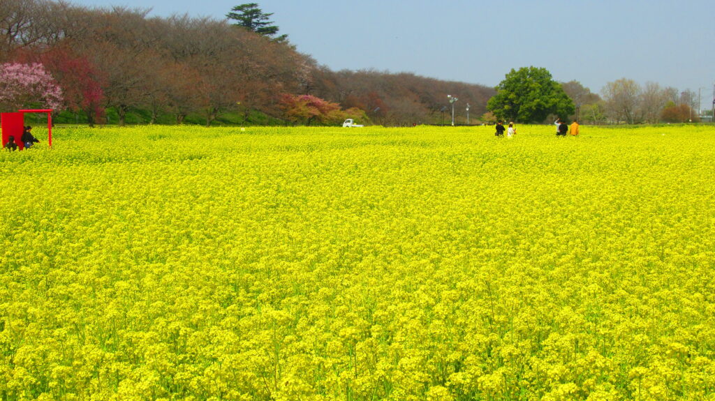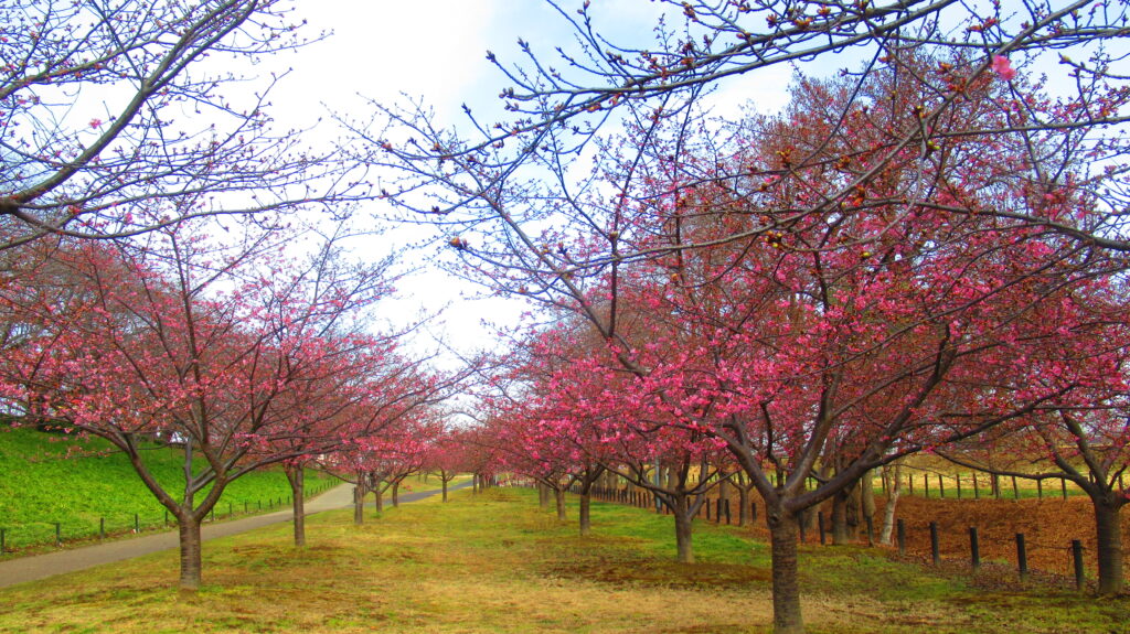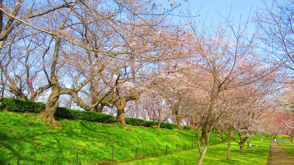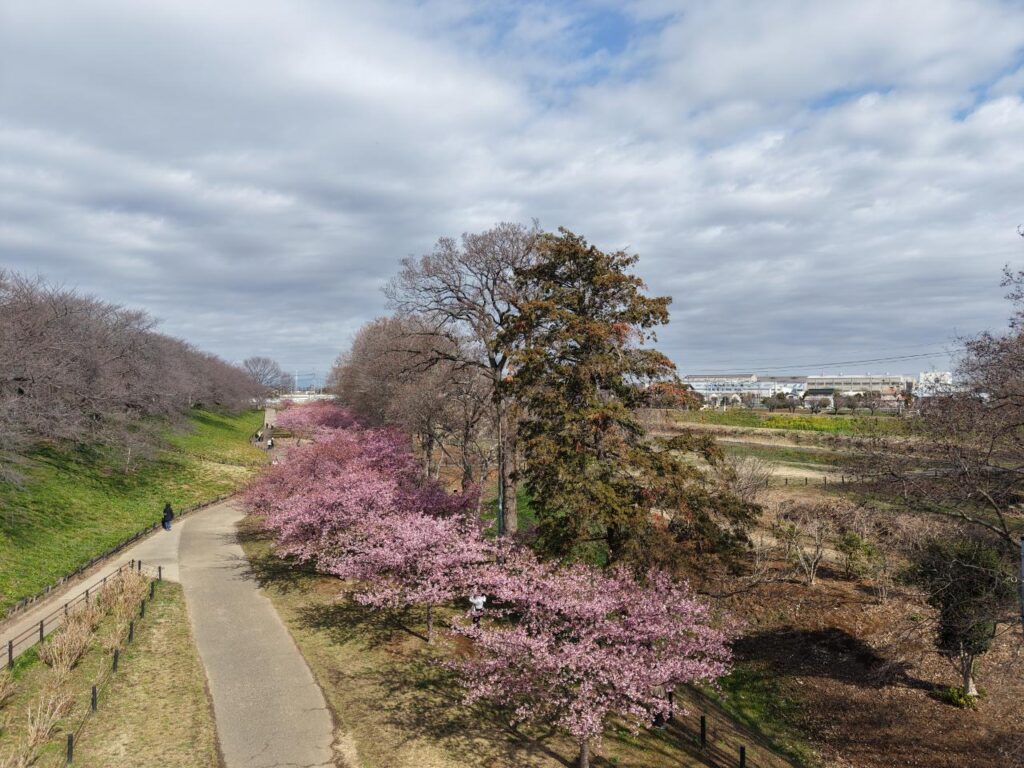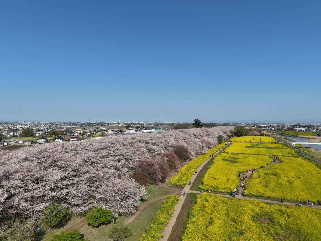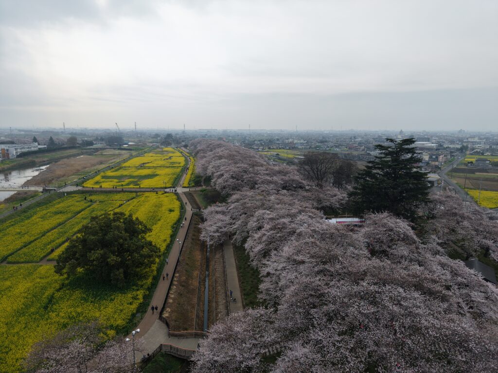 関東の桜の名所として有名な森田鉄工所 権現堂桜堤は、約1000本のソメイヨシノが1kmにわたって咲き誇り、花見を楽しむ来園者で賑わいます。