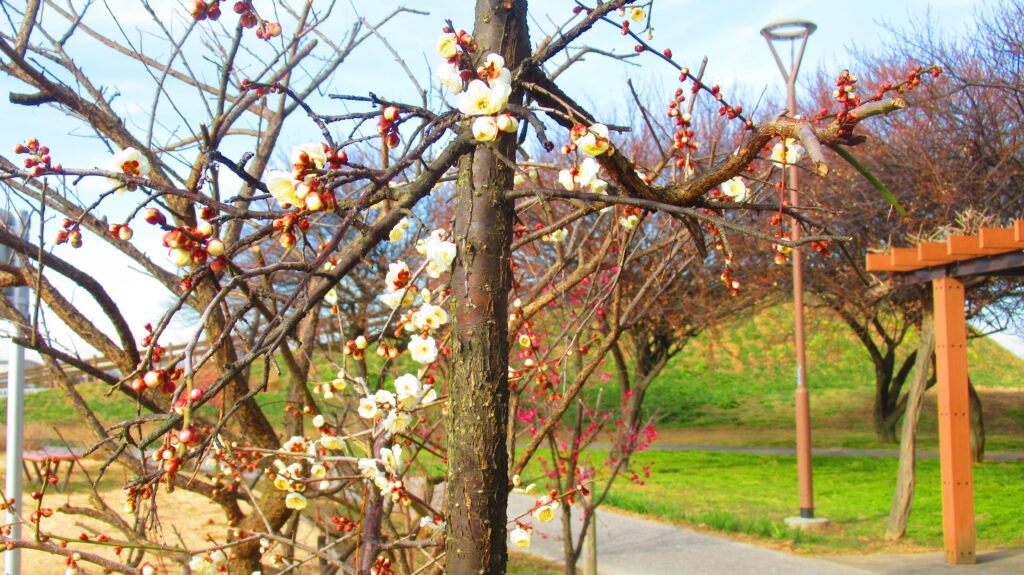 特に暖冬ということではありませんので理由は分かりませんが、白梅が例年よりかなり早く咲き始めました。 右は紅梅です。